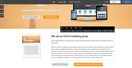 Click on the Edit tab at the top to begin updating your page. Simply click where you want to type to edit your text. You can adjust colors, sizes, fonts, and more with the pop-up toolbar options.